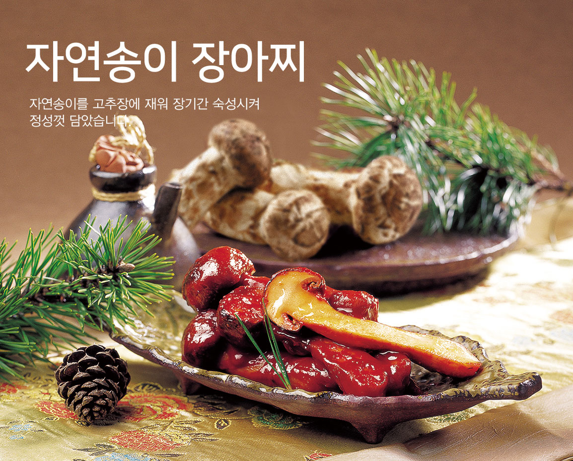 자연송이를 고추장에 재워 장기간 숙성시켜 만든송이장이찌로 선물용으로 좋습니다.